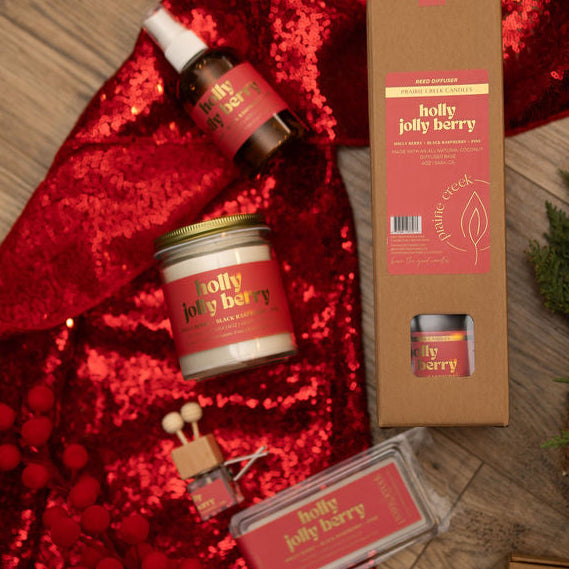 Bright, cheerful, and bursting with festive spirit — Holly Jolly Berry is a merry blend of holly berry, black raspberry, and pine that captures the magic of the holiday season. Sweet, tart berries mingle with fresh evergreen notes to create a perfectly balanced scent that feels like Christmas morning in a jar.