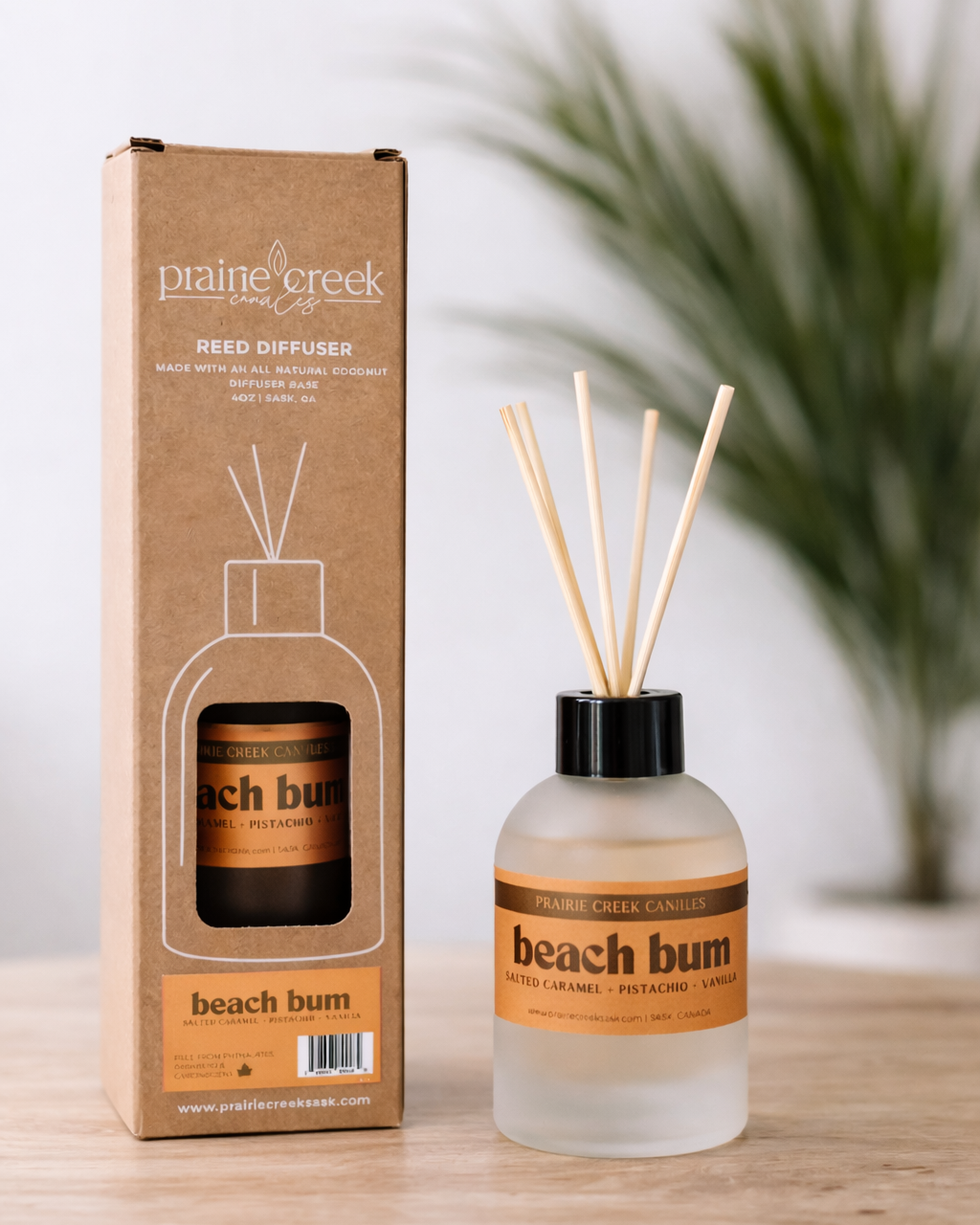 Made in Canada with an all-natural coconut vegan diffuser base, this 4 oz reed diffuser delivers effortless fragrance for up to 2 years. It’s the ultimate set-it-and-forget-it option—no flame, no plugs, no maintenance. Just flip the reed sticks every 6 weeks to refresh the scent and keep the beach vibes going.